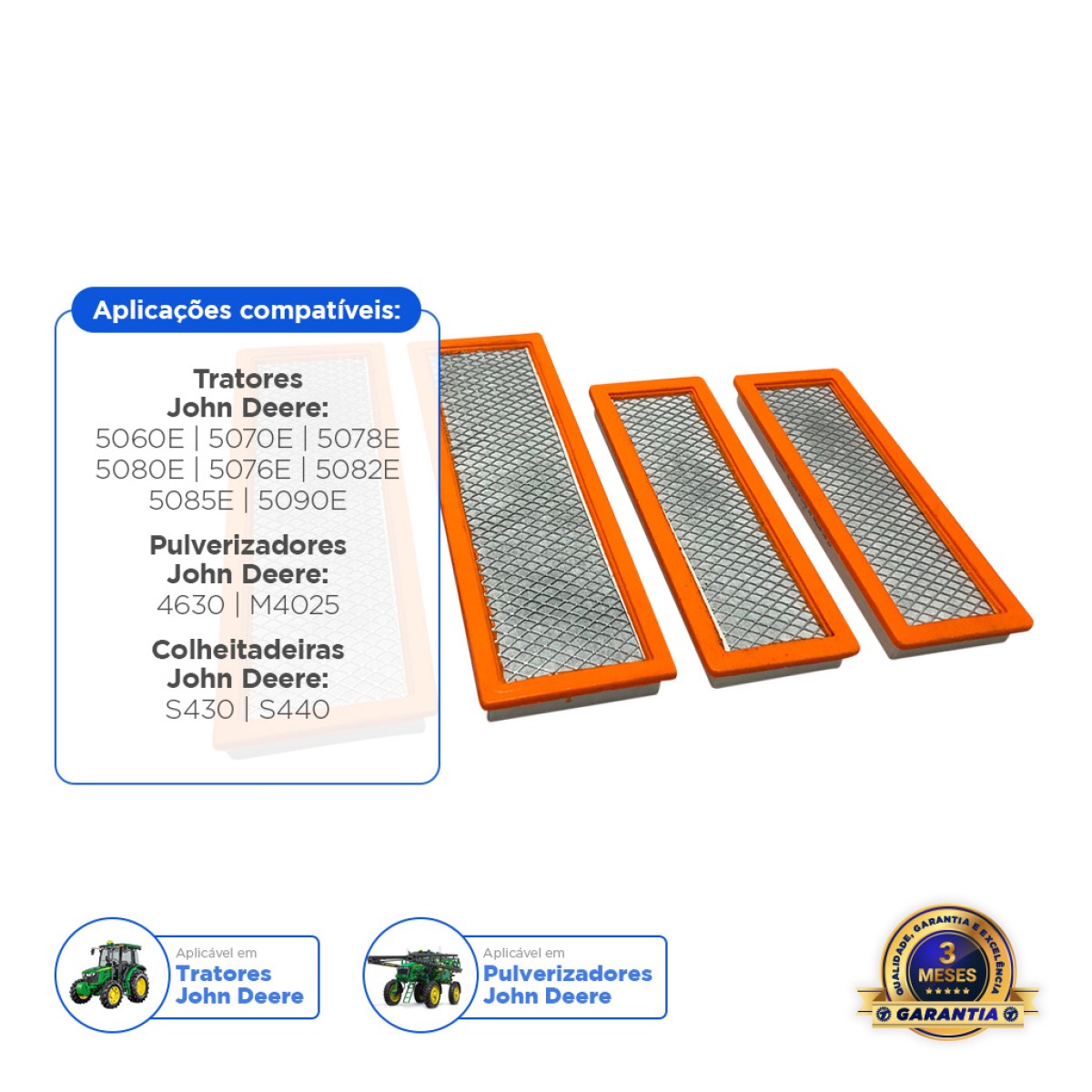 Kit Filtros de Carvão Ativado Aplicável em Máquinas John Deere