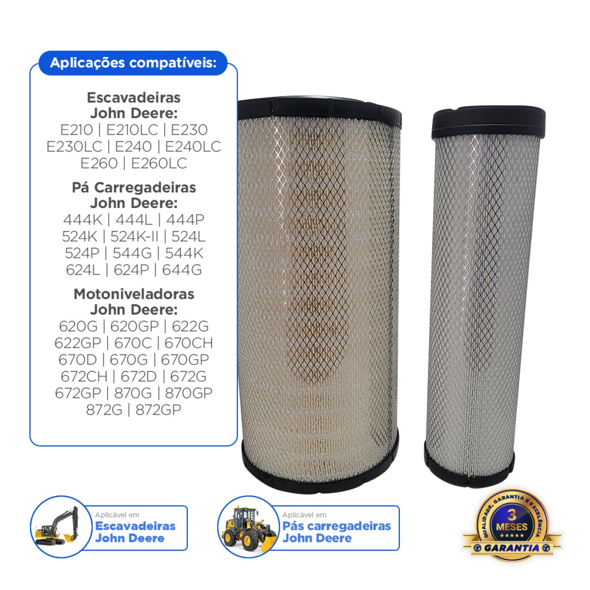 Filtro de Ar Primário e Secundário Aplicável em Máquinas John Deere